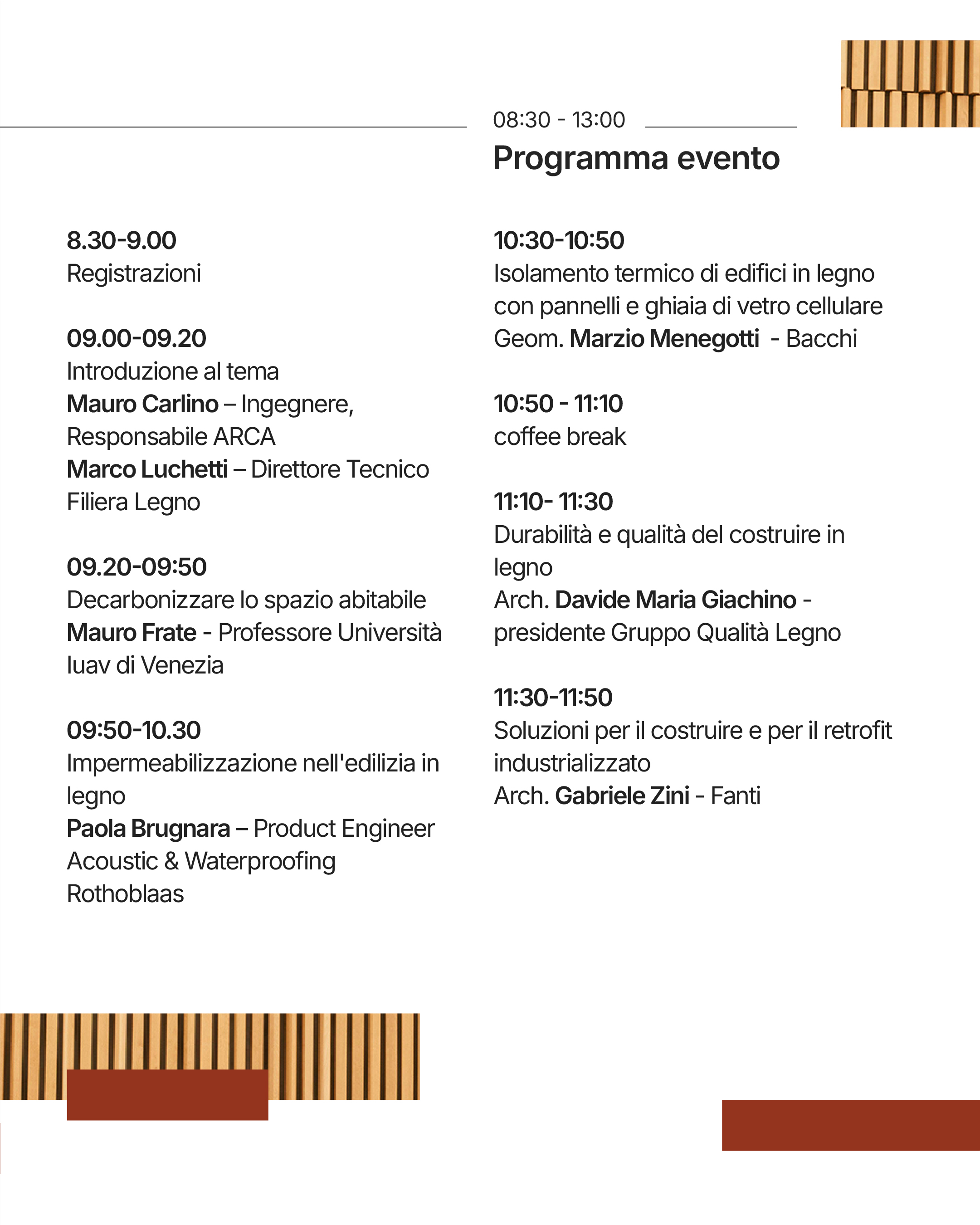 Attraverso contributi tecnici e casi studio, l’incontro offre a progettisti e professionisti strumenti concreti per affrontare il tema della durabilità in modo consapevole, consolidando competenze operative e trasformando la qualità nel tempo in un obiettivo progettuale misurabile.