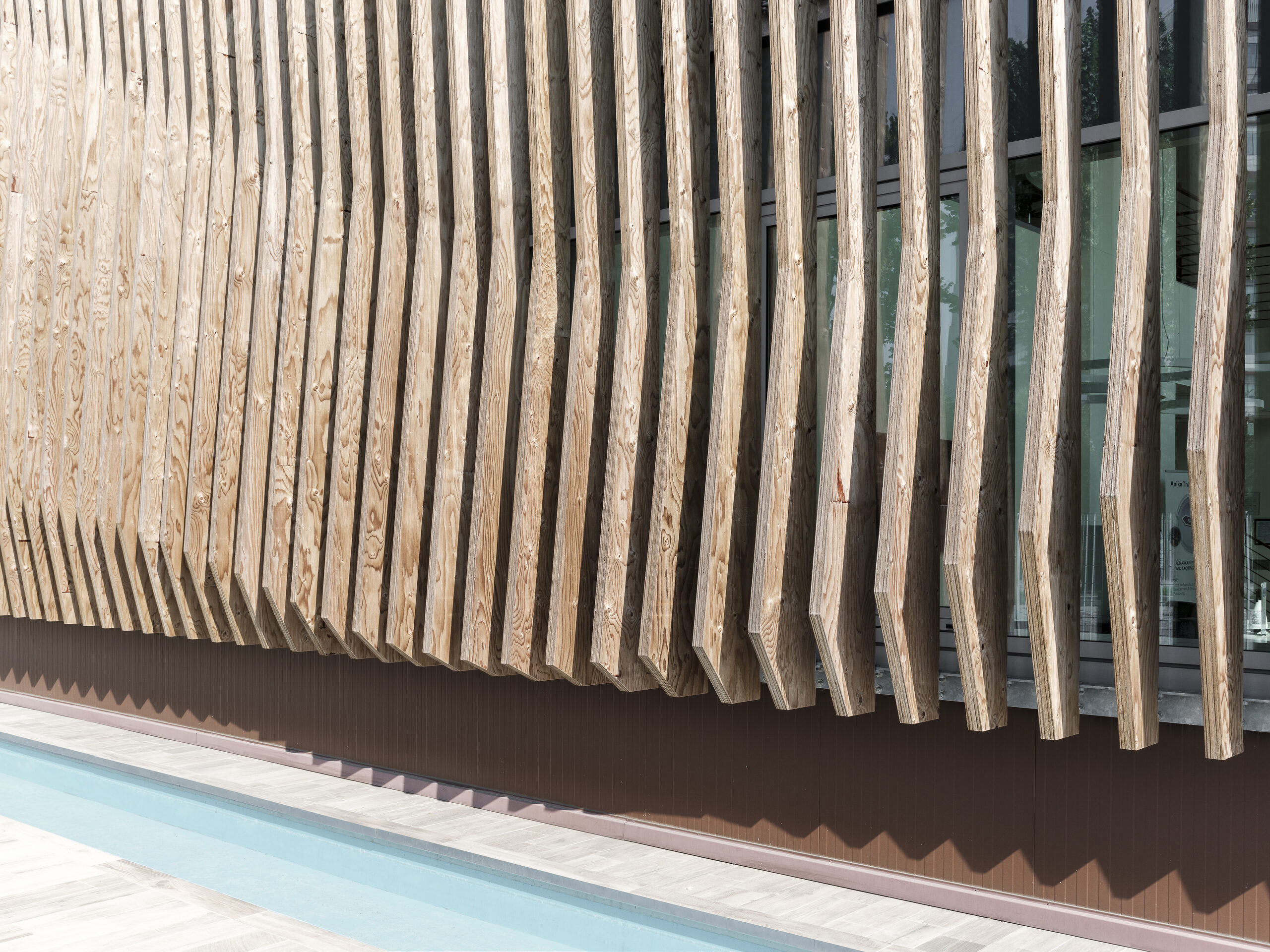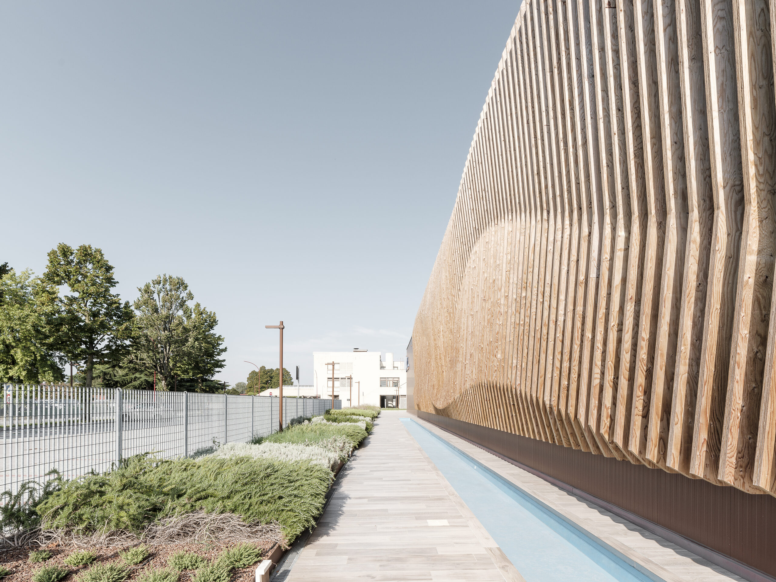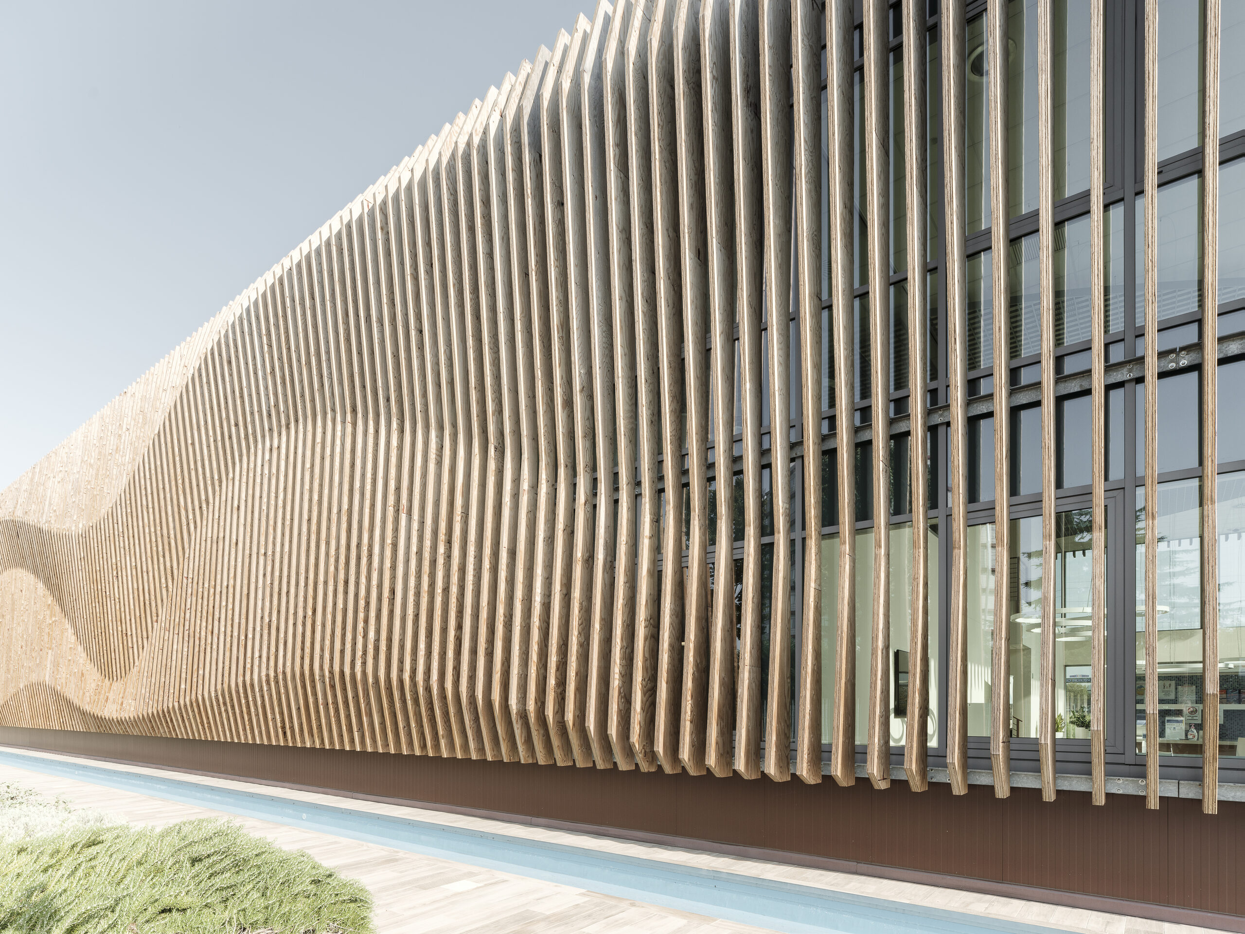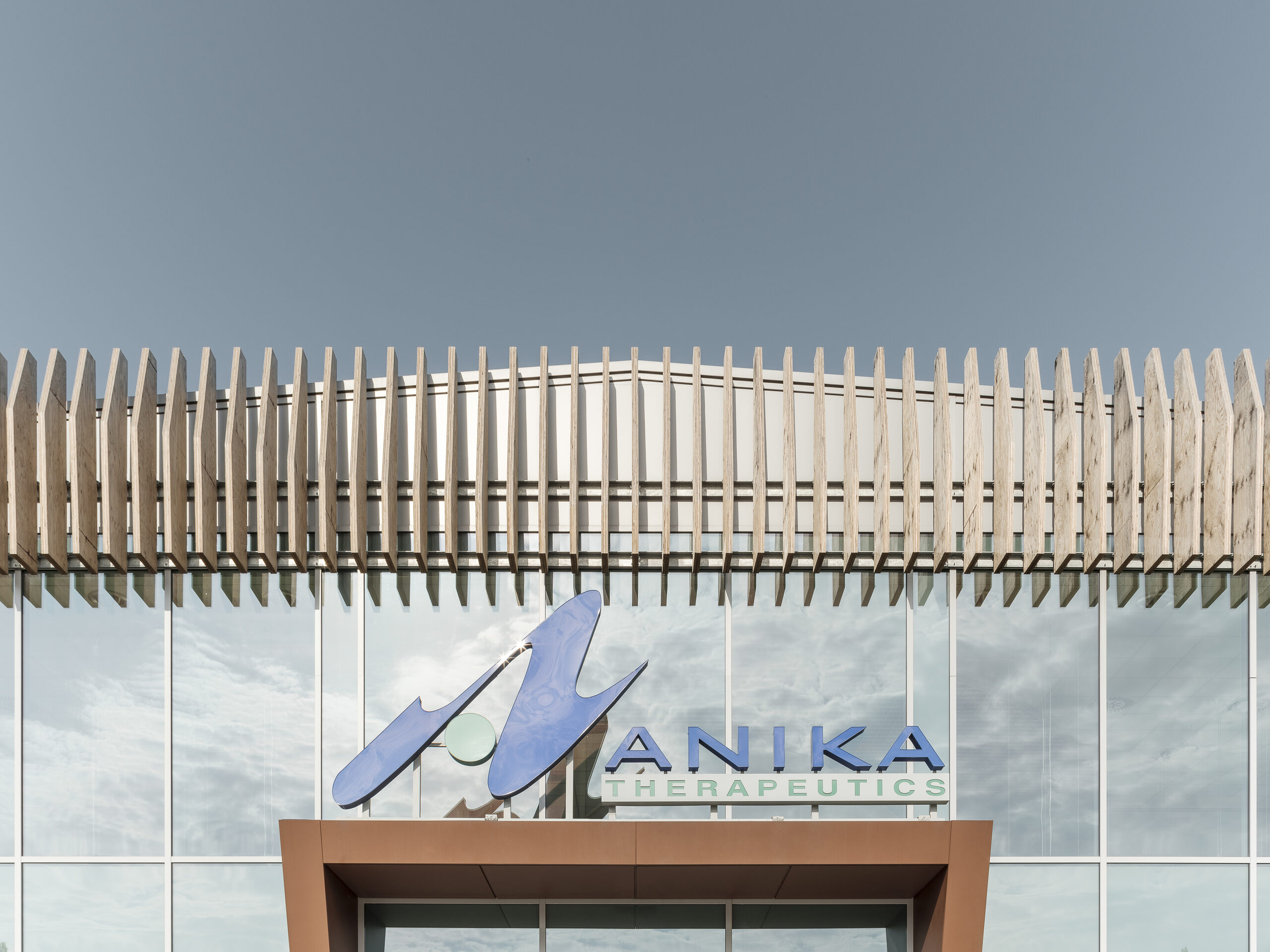 Anika Therapeutics è un gruppo americano che sviluppa e distribuisce prodotti medicali a base di acido ialuronico sui mercati del mondo. Le facciate della nuova sede sono caratterizzate da un rivestimento di lamelle in legno lamellare fine (KERTO). I prospetti, grazie ad un articolato disegno, mostrano un movimento ondulatorio, sotto la luce delle diverse ore del giorno, che conferisce dinamismo all’intera facciata.