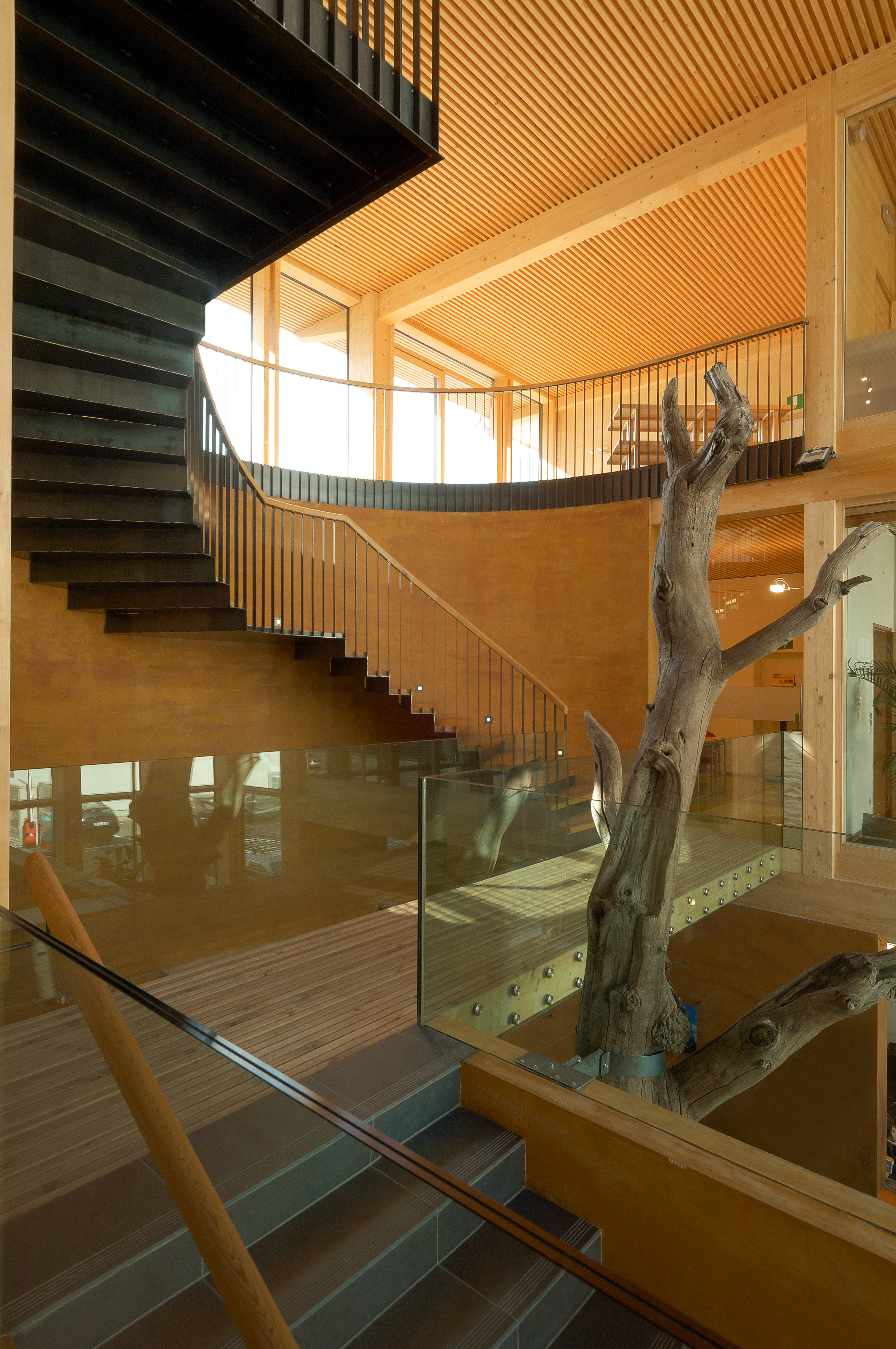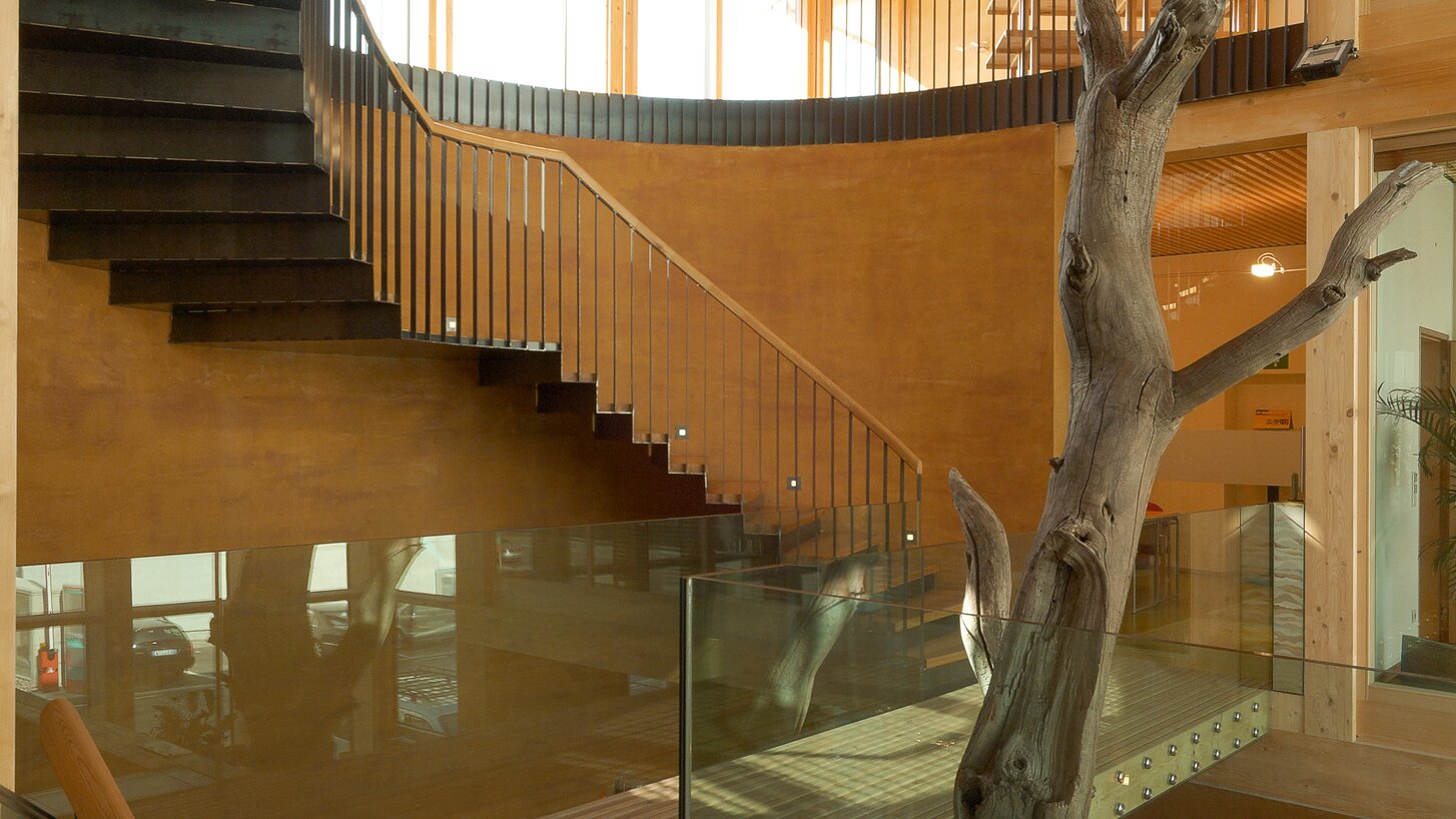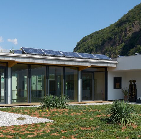 Risparmio energetico, tutela ambientale e benessere igrotermico sono da sempre i capisaldi programmatici di Naturalia-Bau. Grazie a una coibentazione ottimale, in grado di proteggere sia dal caldo che dal freddo, e all’applicazione delle più moderne nozioni in campo di ingegneria energetica e d’impiantistica, è stato possibile realizzare il primo edificio a emissioni zero in Italia, utilizzando solo materiali edili completamente naturali. Armonia e bellezza si fondono in questa costruzione con telaio in legno. Il solaio a vista in legno regala un ambiente decisamente confortevole. L’edificio, inoltre, può essere ampliato in ogni momento, alzandolo di un ulteriore piano. La sede di Naturalia-Bau si è aggiudicata la targhetta CasaClima Oro+ ed il premio per la migliore CasaClima 2009.